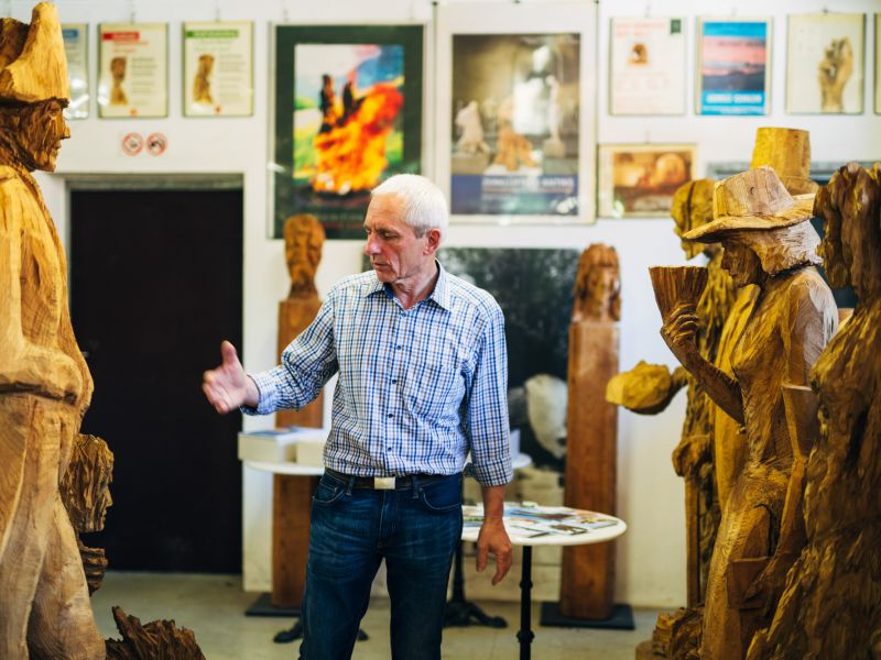 Andreas Kuhnlein schält nicht heraus mit Hohleisen, Klöpfel und Schnitzmesser, vielmehr bearbeitet er das Holz mit der Motorsäge. Er bedient sich der natürlichen Eigenschaft des Materials und betrachtet diese auch als wesentliche Komponenten seiner ästhetischen Aussage. Der Bildhauer aus Unterwössen ist international tätig und lädt in seine Werkstatt ein. Kostenfrei, Teilnahme nur mit Anmeldung. Anmeldung erforderlich bis zum Vortag der Veranstaltung 12 Uhr beim Achental Tourismus über das Anmeldeformular, unter Tel. 08641-597910 oder info@achental.com