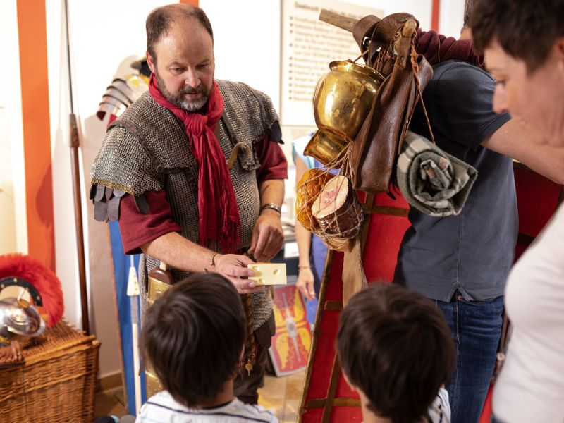 Erfahren Sie von einem „echten“ römischen Legionär (alias Museumsleiter Matthias Ziereis) Spannendes über die römische Armee. Was trugen die römischen Soldaten an Kleidung und Ausrüstung? Wie lebten die Bewohner im antiken Bedaium? Haben die Kelten und Römer hier gekämpft? Diesen und anderen interessanten Fragen zum römischen Militär und über den Römerort BEDAIUM wird an diesem Nachmittag in der Mitmachführung im Römermuseum auf den Grund gegangen.
