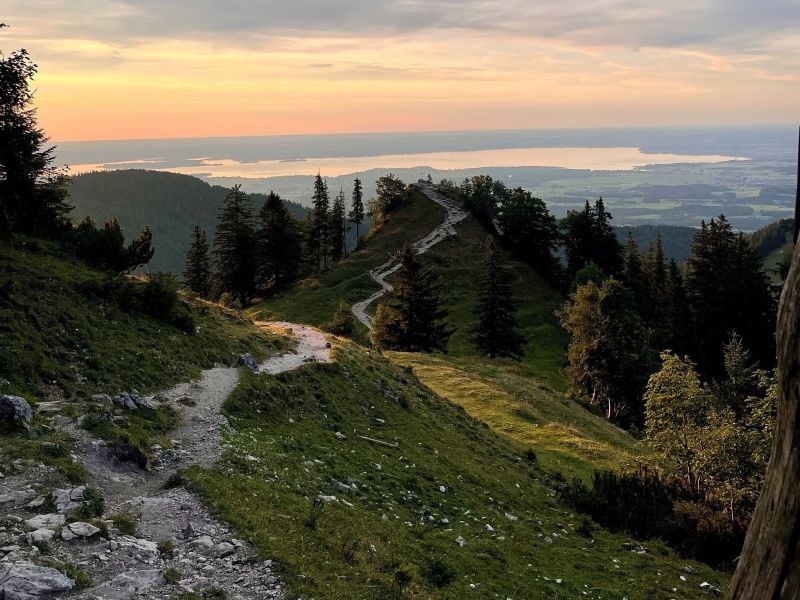 Der Gipfel des Kleinen Felln ist schnell erreicht und belohnt uns mit einem beeindruckenden Panorama – bei klarer Sicht reicht der Blick weit bis zum Chiemsee. Besonders im weichen Licht des Frühlings entfaltet die Landschaft hier ihren ganz eigenen Charme.