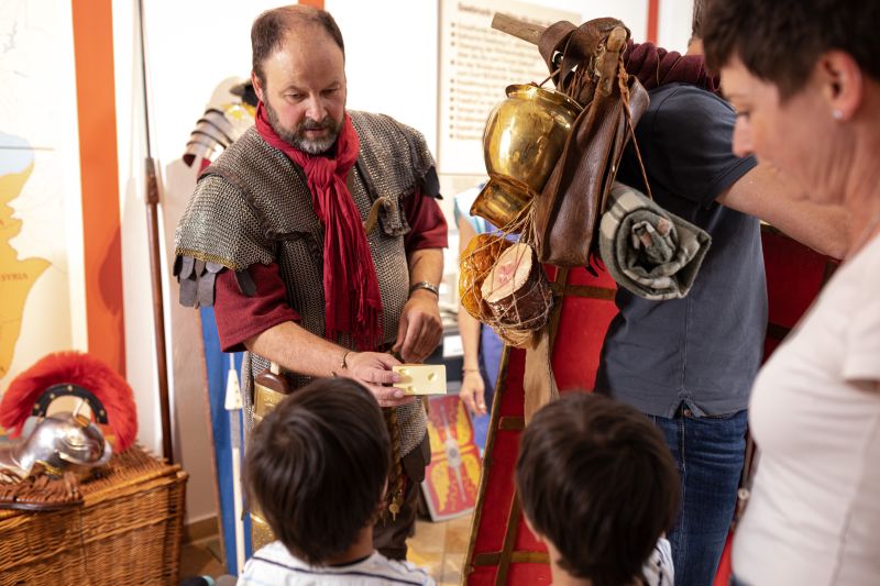 Museumsleiter Matthias Ziereis führt Euch in der Rolle und Gewandung eines römischen Legionärs durch die aktuelle Sonderausstellung. Er zeigt wie eng das Reich der Römer mit seinen agrarischen Wurzeln, dem Kleinbauerntum und den Villen in den Provinzen verflochten war. Ein weiteres Thema ist das römische Militär, präsentiert als Mitmachführung für Jung und Alt.