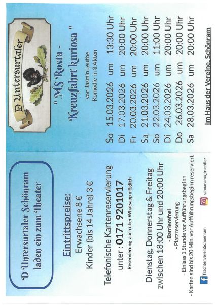 Es wird das Stück gezeigt "MS Rosta-Kreuzfahrt kuriosa" von Jasmin Leuthe in 3 Akten.