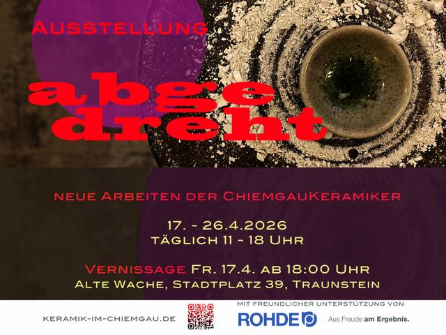In der Ausstellung treffen traditionelles Handwerk und moderne Techniken aufeinander. Von Alltagsgegenständen bis hin zu skulpturalen Formen-der Titel „abgedreht“passt doppelt: das Drehen oder Umdrehen auf der Drehscheibe und eine spielerisch rebellische Seite der Keramik, die außerhalb konventioneller Normen unterwegs ist. Mittlerweile haben sich die allesamt professionell arbeitenden Werkstätten aus dem Chiemgau als fester Bestandteil der Kulturszene rund um den Chiemsee und überregional etabliert. Keramikliebhaberinnen können sich erneut auf spannende und einzigartige Arbeiten freuen.