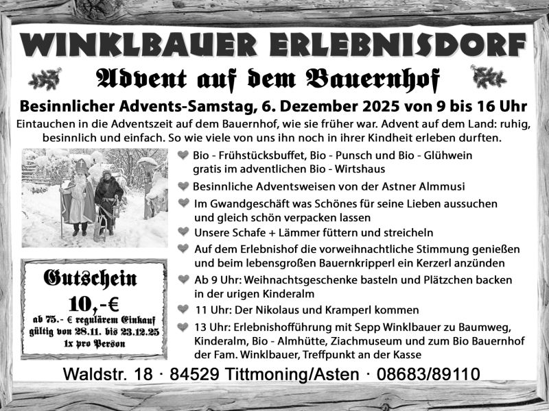 Samstag, 06.12.2025 / 09:00 - 16:00 Uhr / Winklbauer Erlebnisdorf