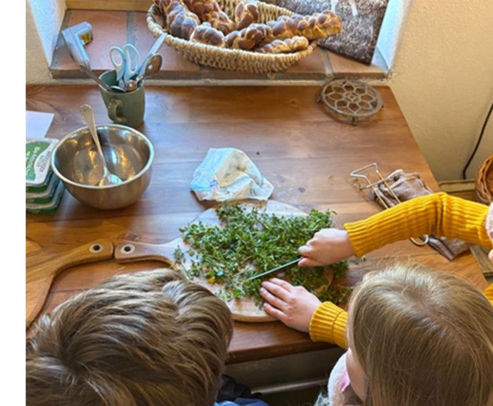 Beim Herstellen von Kräuteraufstrichen und Kräuterbutter schauen wir uns Kräuter und die Geschichte der Butter an.