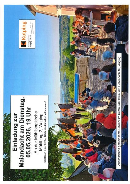 Die Kolpingsfamilie lädt herzlich zur Maiandacht an der Mühlbergkirche, Mühlberg 2 in Waging ein.
