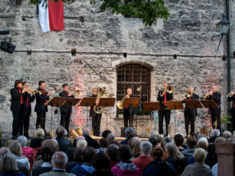 "Musiksommer zwischen Inn und Salzach" auf der Burg Tittmoning mit den Grassauer Blechbläsern. Infos bei der Tourist-Info Tittmoning, 08683-700710.
