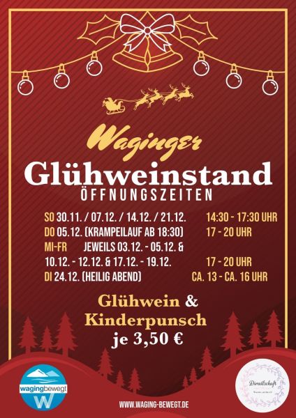 Die Dirndlschaft Waging am See lädt herzlich zum Umtrunk am Waginger Glühweinstand am ein: